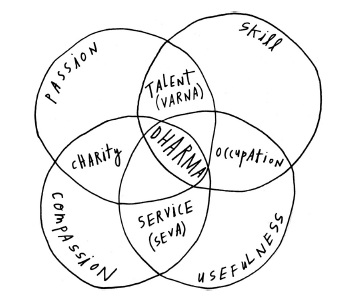 Dharma: when your talent and passions connect with what the universe needs, you are living in your dharma (purpose)